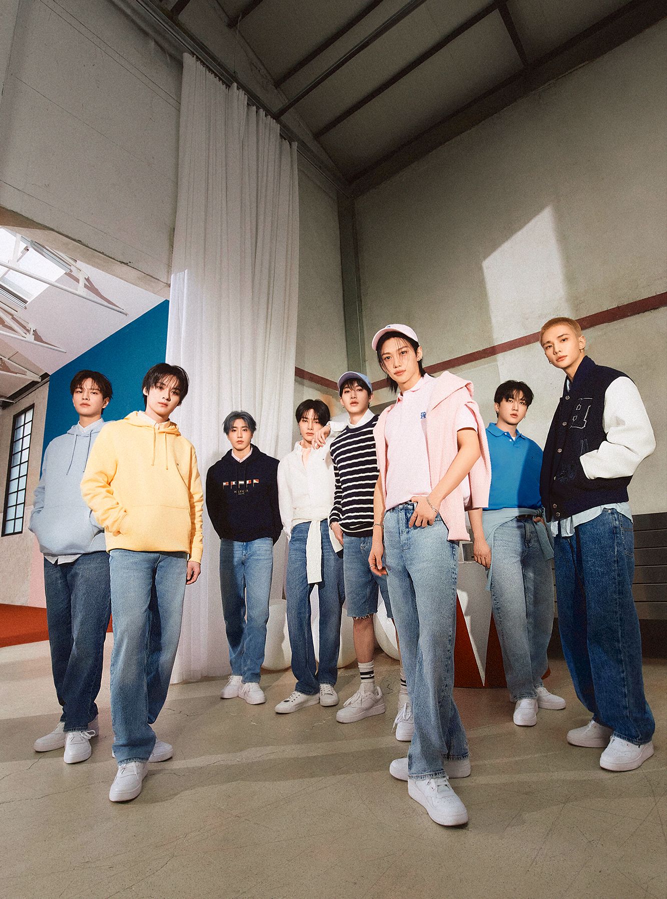 ํ๋ฏธ ํํผ๊ฑฐ(Tommy Hilfiger)๊ฐ ๊ธ๋ก๋ฒ K-ํ ๊ทธ๋ฃน ์คํธ๋ ์ด ํค์ฆ(Stray Kids)์ ํจ๊ปํ 2025 ๋ด/์ฌ๋ฆ(S/S) ์ปฌ๋ ์